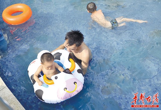 7月7日,长沙市民刘群(化名)带着5岁的儿子北北去游泳池学游泳,游泳圈突然瘪掉了,北北一边下沉一边喊救命。幸亏刘群反应快,一把捞起儿子,才没有发生意外。