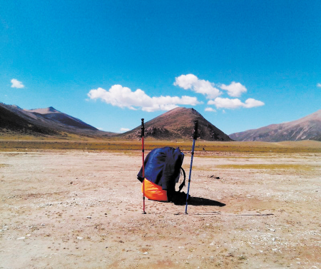 侯群峰在徒步去西藏途中留影。均为受访者供图