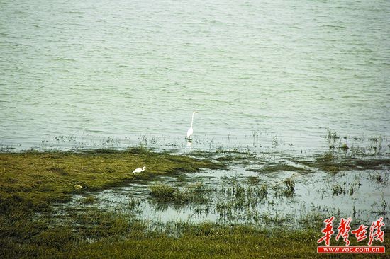 巴溪洲的洲头,池鹭停在一撮黄土上。均由志愿者罗莎 供图