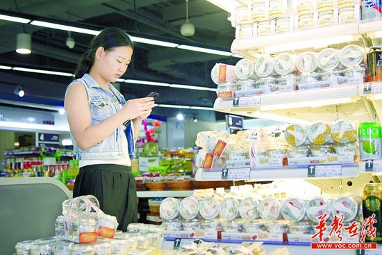 8月26日,长沙hishop悦方店,一名顾客在商品区用手机通过商场的无线wifi上网。 记者田超 实习生 任梦龙 摄
