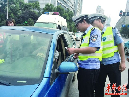 9月23日,长沙交警支队机动大队民警在市区路面查处车窗抛物不文明行为。