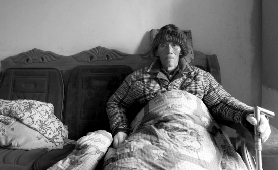 每日躺在床上,吃喝拉撒都要依赖家人的卢大江,生前最后的时光,能做的只是听听广播、吸吸烟。2014年1月,可能是在床上躺得太久,老人连照片里的自己都不太认识了。
