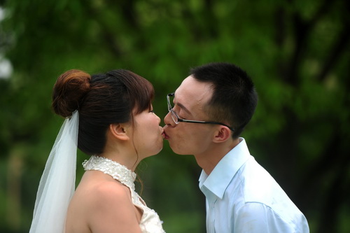 在洋湖湿地公园,穿着婚纱和西服的新娘新郎,带着幸福的表情在草地上摆出各种动作。摄影师按动快门,将喜悦幸福的表情一一捕捉。爱意荡漾在美景中,夏天的风拂过鼻尖,似乎都能嗅到幸福的味道。
