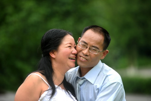 据谢向前介绍,原本今天有15对夫妻拍摄婚纱照,但其中一对夫妻唐国斌和彭金梅,丈夫唐国斌因为临时患病,遗憾未能来到现场。不同于其他残疾人夫妻,这对夫妻看上去与正常人无异,但丈夫唐国斌精神有些不稳定,属于精神残疾。“虽然,他们没能到现场拍摄婚纱照,但为了不留遗憾,我们以后有时间会亲自上门给他们补拍婚纱照。”谢向前表示。