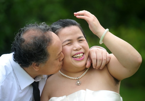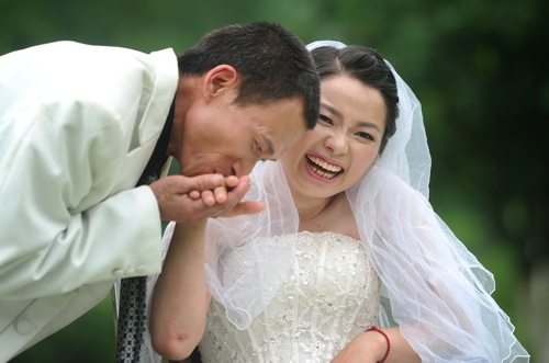 一对对身残志坚的新郎新娘背后,有着许多动人的故事。