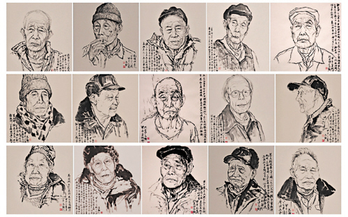 廖志频所作的宁乡抗战老兵画像(部分)。