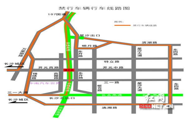 G4(京珠高速)星沙出入口—滨湖路—东四路—漓湘路—开元互通。