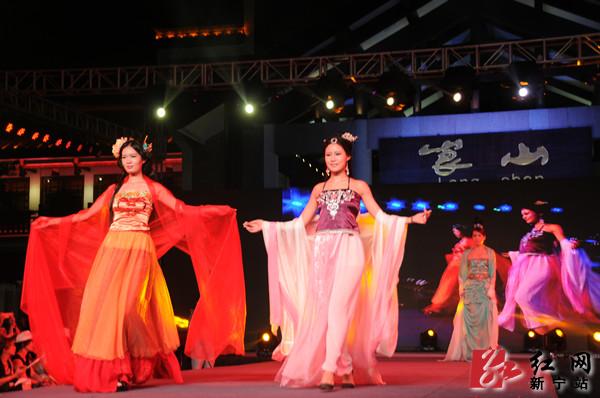 红网新宁站8月20日讯(分站记者 杨坚 李中 郑慧)8月19日晚上是农历七夕前夜,这是个让人难以忘怀的夜晚,在世界自然遗产地崀山,举办了一场独具特色的“七夕肚兜秀”。模特们既展示了汉、晋、唐、宋、元、明、清7个朝代的代表性肚兜的传统之美,也演绎了当今新式肚兜的时尚魅力,让在场的数千名游客和当地群众感受到中国传统文化的多姿多彩和博大精深。