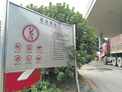 在东二环附近的一家加油站,进站口的“进站须知”上有禁打手机的标志。 长沙晚报记者 聂映荣 摄