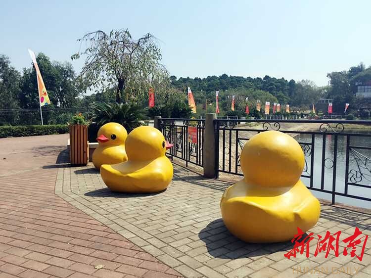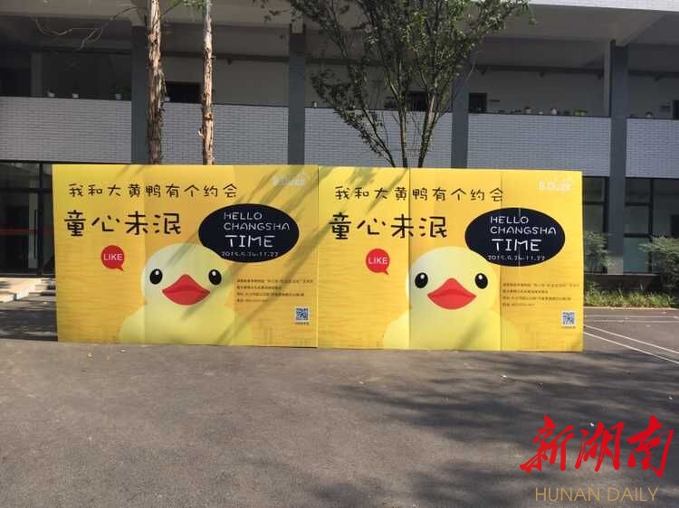 9月18日,霍夫曼授权的大黄鸭将“游到”省植物园樱花湖,它高18米、宽15米,9月24日与长沙市民见面。届时,园内共有3万只大小大黄鸭,包括2000只霍夫曼签名的大黄鸭玩偶。主办方搭建了50栋大黄鸭欧式风情小木屋,通过开展大黄鸭动态巡游活动、大黄鸭自拍比赛、大黄鸭泥捏涂鸦活动、“万人拼鸭签名献爱心给湘西山区小朋友”活动,营造出梦幻的童年氛围。