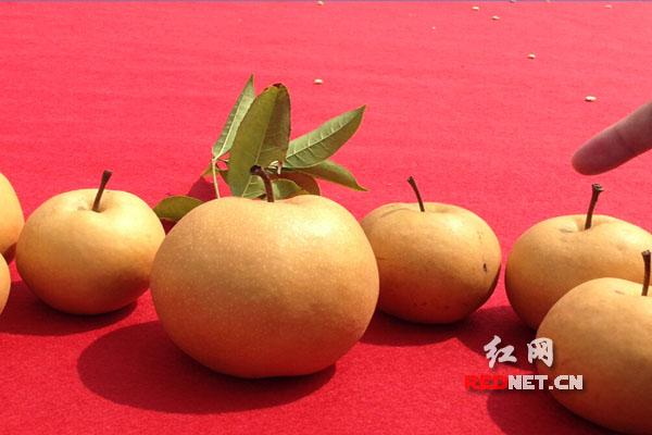 “梨王”称号获得者是吉首市矮寨镇阳孟村村民杨再书,他现场推介种梨经验,在梨子长成葡萄大小就开始套袋,为保证每一只梨都能吸引足够的营养,一颗树通常只保留果子20只左右,多余的全部剪掉;施肥只施农家肥和油枯(榨油后的菜籽渣)。