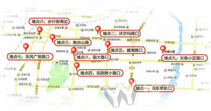 目前,我市以花板桥路口为主,一共有九大“堵点”,分别是花板桥路口、沃尔玛路口、炮台山路、民院附小路口、建湘路口、步行街周边、东风广场路口、国大路口、长炼小区路口,每逢节假日和上下班高峰期,这些地段的交通压力和矛盾更为突出。针对这些堵点的不同情况,我市各相关部门根据《2014—2016年市中心城区道路微循环交通组织实施方案》进行逐步改造。