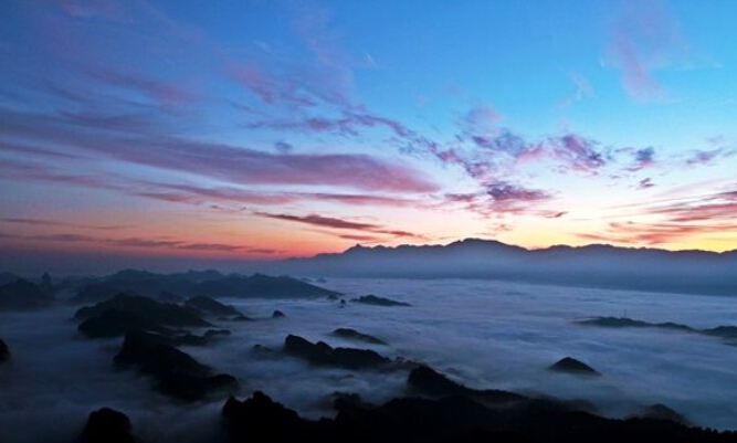 10月12日凌晨,崀山再现云海奇观。方圆四十平方公里范围内,雪白的云海直铺天际,数百座丹霞山峰若隐若现。震撼心灵的“鲸鱼闹海”景观再次为八方游客和摄影爱好者献上了一次难得的视觉盛宴。