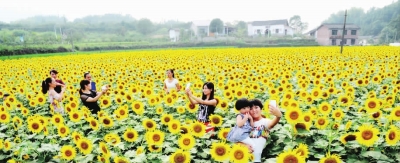 美丽乡村的蜕变,萌生了乡村经济发展的新形态。图为小河乡潭湾屋场盛开的向日葵花海,吸引众多游客前来。邓霞霖 摄