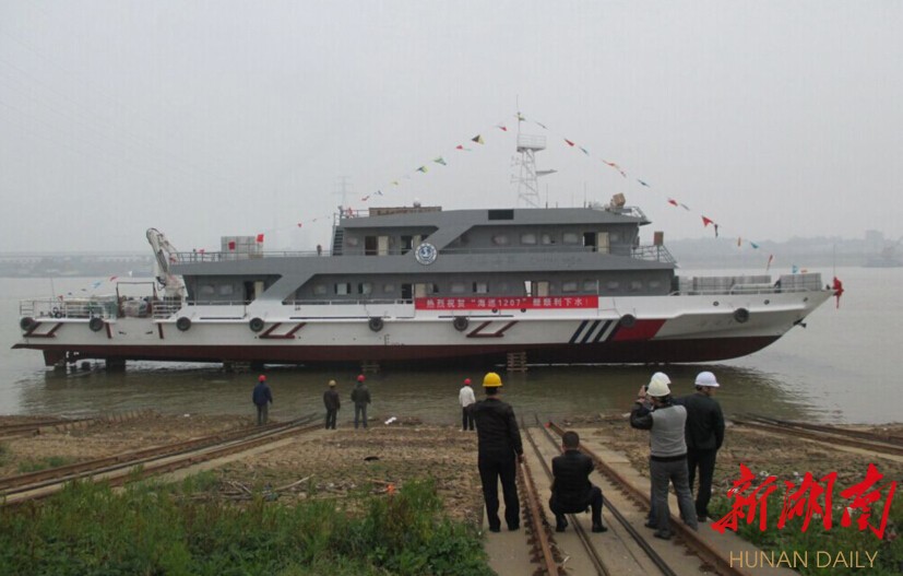 华声在线-新湖南客服端11月12日讯(记者 徐典波 通讯员 魏健斌)今天,记者从岳阳海事局获悉,“海巡1207”已在长沙“湘船重工”生产基地成功下水。这是目前我省(含长江干线和湖南内河)海事机构配备的最高级别的巡航救助船。