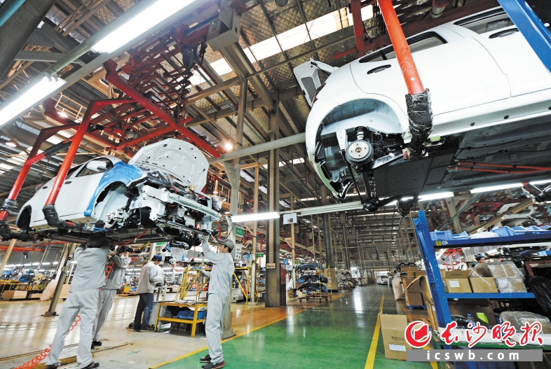 长沙汽车及零部件产业窗口服务平台有力助推了长沙汽车产业的发展。这是众泰汽车忙碌的生产车间。