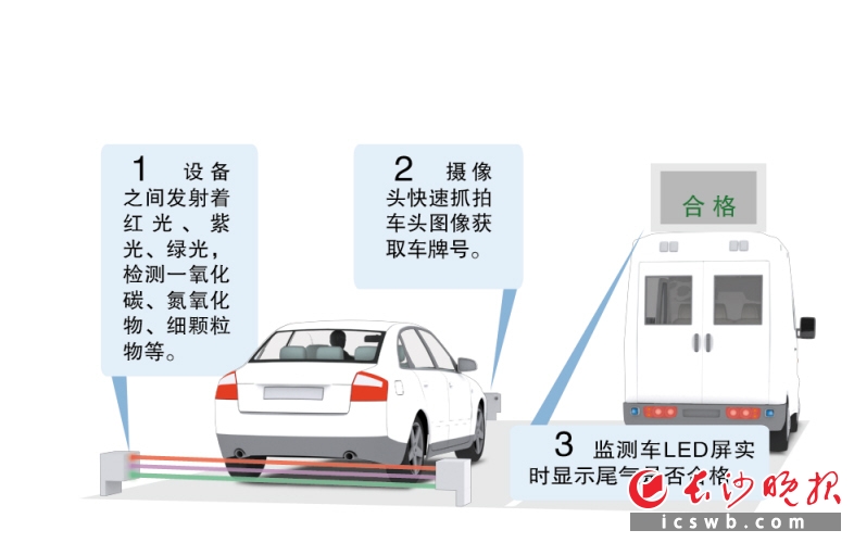 昨日上午,记者来到位于五一大道与蔡锷路交会处的执法点。路边,一辆标有“尾气污染排放遥感监测”字样的车辆引起了记者的注意。原来,这就是长沙环保部门仅需0.7秒就能检出尾气是否超标的“神器”。