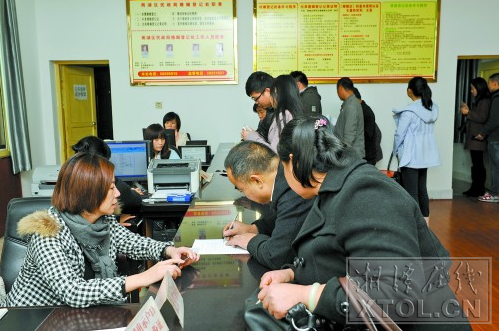 1月23日,市民在雨湖区民政局婚姻登记处办理登记手续。(记者 欧阳天 摄)