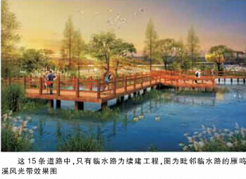 另外,沿着柿江河的临水路及雁鸣溪风光带已于去年启动建设。临水路全长2.56公里,目前已完成80%的路基工程量,计划今年10月完工。