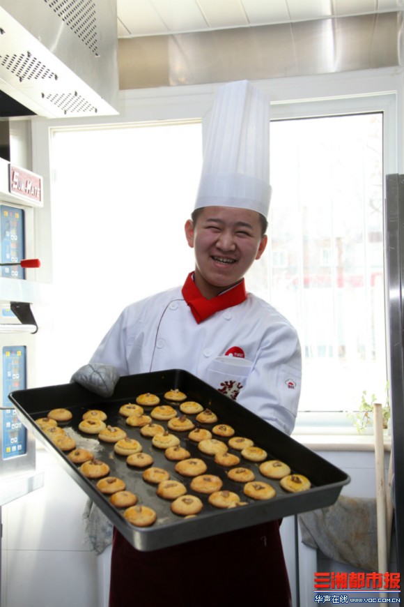 梁后旺在北京劲松职业高中学习烤饼干