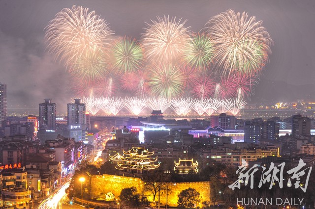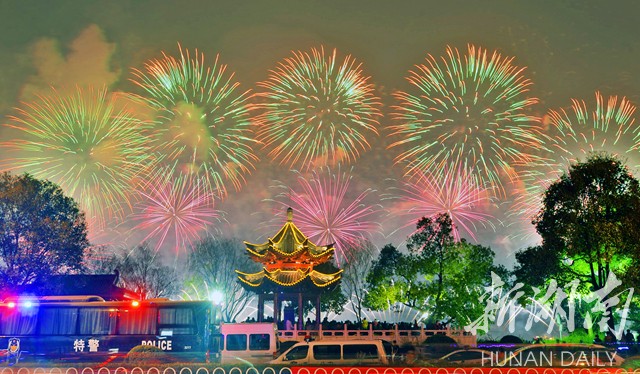 2月22日晚,长沙市《金猴闹元宵 九州幸福春》主题焰火晚会在橘子洲上演,璀璨烟花闪耀天际,增添了元宵节的喜庆气氛。湖南日报记者 李健 童迪 摄