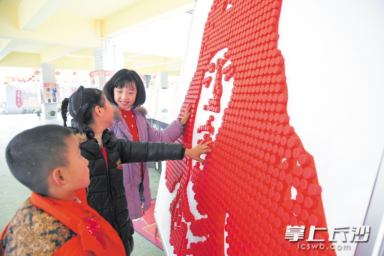 “哇,这个雷锋叔叔头像真是惟妙惟肖。”每位走进芙蓉区荷花园街道活动现场的居民,都被一块2.5米长、 1.5米高的大型画板所吸引。“这可是我们全班同学的集体创作。”育英二小四年级学生朱文婷告诉记者,2000个瓶盖都是小伙伴们收集而来,制作时更是分成多个团队,有的负责制作底图,有的负责粘贴,虽然花费了一周的休息时间,大伙却干得倍有劲。