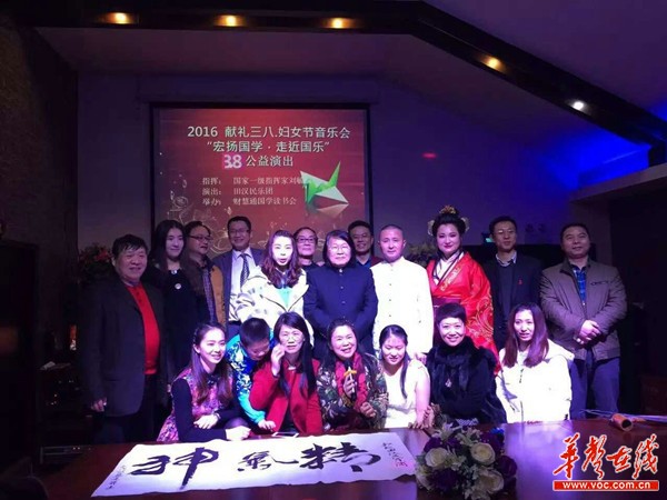 华声在线3月9日讯(通讯员 周京霞) 昨晚七时许,由中国艺术家协会南方艺术人才专业委员会 湖南湘商俱乐部 湖南长沙汇友文化 湖南长沙市新秀传播有限公司、财慧通国学读书会、湖南邵阳商会等联合举办的2016献礼"三八"妇女节音乐会"宏扬国学,走进国乐"38公益活动在长沙铁路文化宫隆重举行,本次活动总指挥吴枚女士介绍了该活动大体情况: