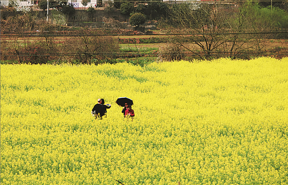 “上周日接待游客超过5000人,还有来自周边城市的游客。”徐家塘村村长周占民介绍,为带动乡村旅游发展,该区今年将油菜花田扩种至1000余亩。其中游客较为集中的柏树组、大塘组、上求是组、下求是组连片种植面积达到500亩。