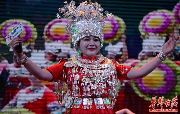 华声在线4月26日讯(记者 刘玉锋 通讯员 廖晓菲 肖舞)黄桑巫傩艺术团的苗族姑娘,身着银光闪闪的苗族服饰,唱着甜美的苗族山歌,不停地给入场嘉宾敬拦门酒、披红……4月26日上午,湖南省文化馆。《星光大道》的冠军歌手阿苗千千新歌专辑发布会暨歌迷见面会在此举行,浓郁的苗族文化气息感染着现场粉丝。著名歌唱家邓玉华、关牧村、蒋大为等好友为阿苗千千录制了祝福视频。