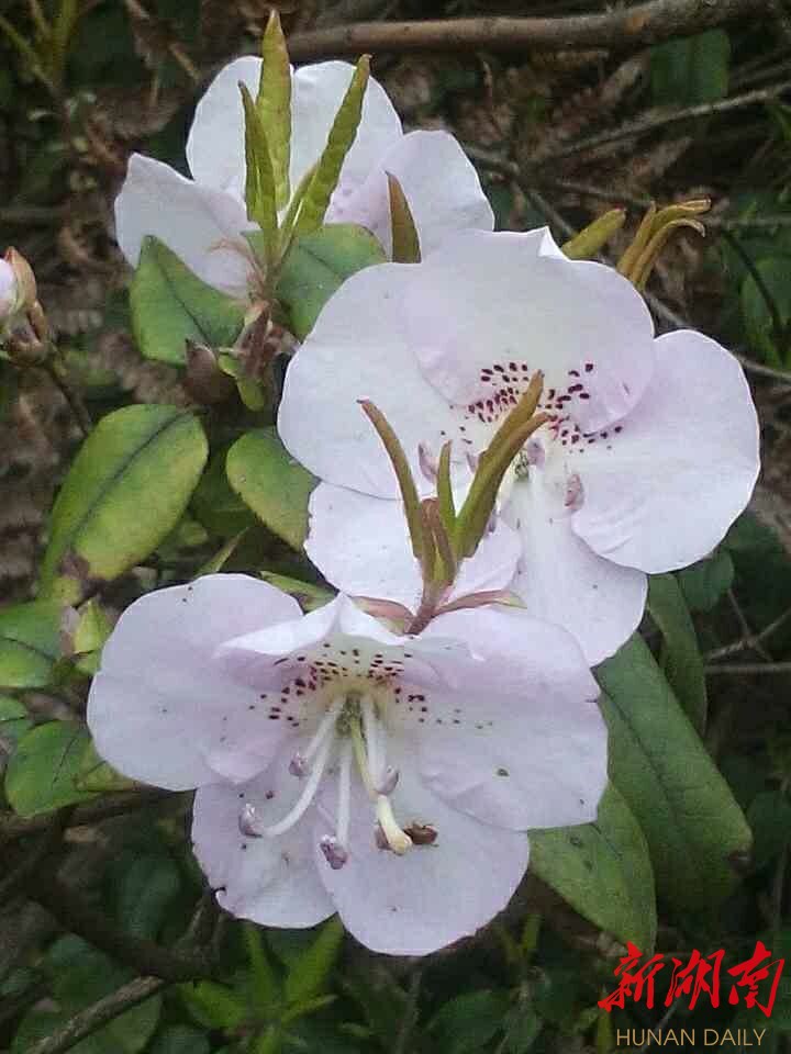 新湖南客户端4月6日讯(记者唐善理 通讯员唐明登) 近日,在湖南省东安县川岩乡上界头村将军棋万亩杜鹃花海里,村民发现了珍稀物种野生白杜鹃。据植物专家介绍,主产云南、广西并少见的白杜鹃,在湖南出现,十分罕见。