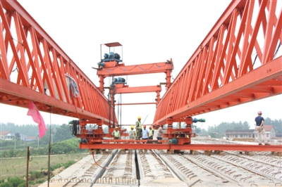 红网综合 据常德日报报道 澧县澹水大桥是沅澧干线2号大道控制性工程之一;大桥横跨澧县澹水河,按市政桥梁设计,全长1205.88米,桥面宽23.5米。目前,桥梁南岸的下构工程已基本完成,预计今年年底桥面工程将全部完工;明年下半年,桥梁将全部完工。图为近日施工人员进行大桥吊桩前准备。谭明 摄