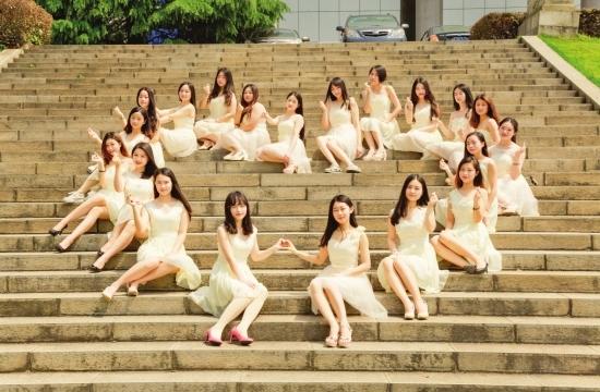 长沙学院日语三班的女生正在拍毕业照,这个班只有四名男生。 图/晨报摄友团杨东旭