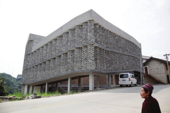 筹资180多万,2011年夏天构思设计,2012年2月动工,2014年4月29日竣工。几乎是一气呵成。田蕊说,卫生院有三大特色:一是走廊用的砖,每块都有三个不同形状的孔,随着早、中、晚光线的变化,投射到走廊地面的形状也不同;二是环形坡道,农村卫生院没有电梯,轮椅、手术推车上下都不方便,有了这条贯穿所有楼层的坡道,这些问题就都解决了;三是外墙的砖,用的是传统青砖,而且为了避免太阳光直射到药品、药房,所有外墙都是侧斜的。