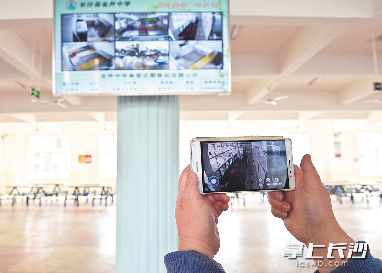 手机上下载APP,能随时查看食堂师傅们的操作细节。 长沙晚报记者 王志伟 摄