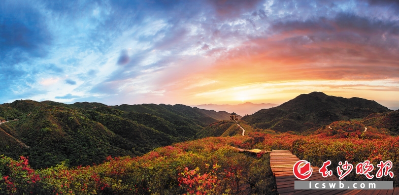 “回看桃李都无色,映得芙蓉不是花。”白居易曾经深情歌颂花中西施——杜鹃花,杜鹃花又被人亲切称为“映山红”,每当春暖花开之际,漫山遍野都是其妖娆的风姿,远远望去,山峰如涂抹了红红胭脂,如火如荼,热情而浓烈,让人恨不得醉卧其中,将美景长收眼底。那么春夏之交,芳菲已尽,又该到何处寻觅呢?其实我们不用去远方,艳丽的杜鹃花就在长沙之巅——浏阳大围山。