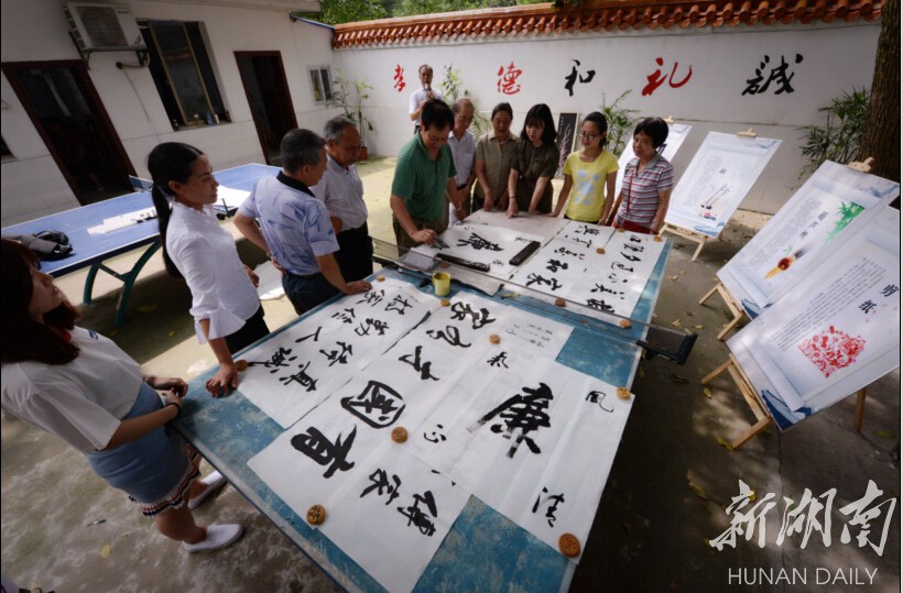 6月28日,长沙市开福区伍家岭街道浏阳河社区,居民在进行以“好家风传孝道”为主题的书画创作。当天,该社区开展“两学一做”好家风传孝道活动。