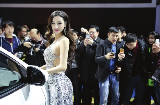 2015年12月,性感的吴春怡在长沙国际车展上做车模,在她的展位前,总围绕着很多男人。