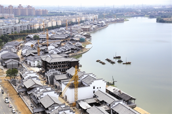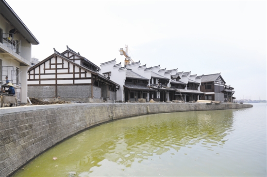 昨日上午,记者在市城区常德河街项目施工现场看到,工地内大部分建筑主体工程已基本完工,部分建筑已进入室内装修阶段,工人们正抓紧对主体工程进行扫尾工作。常德河街项目是我市目前重点推进的城市建设项目,位于穿紫河东段,东起常德大道,西至紫缘路,南邻姻缘河,北连柳河路,总建筑面积约7.78万平方米,街区总长度约1500米,单体建筑211栋,商铺368间。该项目以1943年老常德时期沅江边的麻阳街、大河街和小河街为原型,打造集旅游、商业、文化、历史于一体的常德记忆古街。本报记者 焦阳 摄