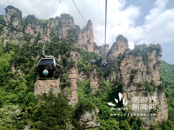 新改造的天子山索道于今年2月6日开放,被称为世界第一条“土豪金"索道。