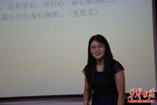 下午第一位为学员们授课的是(美国)科技教育协会义务讲员、陕西师范大学教授、博士生导师赵微, 现任美国亚利桑那大学孔子学院中方院长。赵微老师以《维护教师心理健康》为主题,从《小学教师专业标准》出发,认为教师要有健康的心理状态,首先就要树立正确的学生观,即一切为了每位学生的发展,关注每一位学生,关注学生的情绪生活和情感体验,关注学生的道德生活与人格养成。赵微老师特别提醒学员们:一个被老师唾弃的孩子,学校就是他的地狱,一个被父母、老师同时唾弃的孩子,这个世界就是他的地狱。