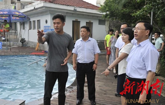 为了丰富中小学生暑期生活,培养锻炼意识,今日至8月21日,长沙市中小学生可就近免费参与游泳、乒乓球、足球、篮球等相关培训班。为了确保游泳、培训安全,今天下午,由长沙市人民政府秘书长谭勇带队,会同长沙市体育局等多部门共同组成的巡视组,对八方小区、阳光100小区、恒大华府等8家室内游泳馆进行了“突击”检查,各游泳馆救生员值守到位,安全防护措施良好。