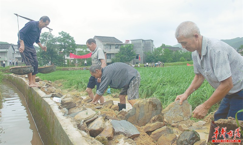 7月6日,溆浦县油洋乡东山村,党员突击队在修复被洪水冲毁的田间灌溉渠道。截至目前,全县党员干部及时修复大小水渠20000余米。