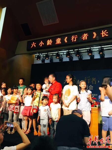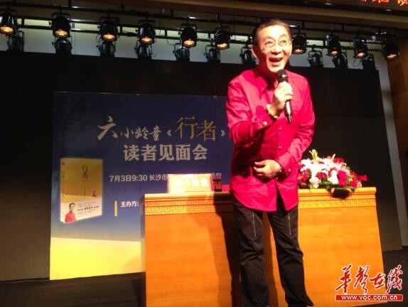 7月3日上午,身着大红色衬衫的六小龄童,带着他的首部自传《行者》来到长沙图书馆举行新书发布会,谈他的父亲六龄童、孙悟空、西游记,讲述他的坚持与梦想。他的这一生,就像新书封面的那21个字所言:“笑对八十一难,苦对七十二变,一生做好一件事,足矣!”