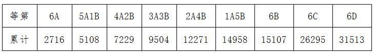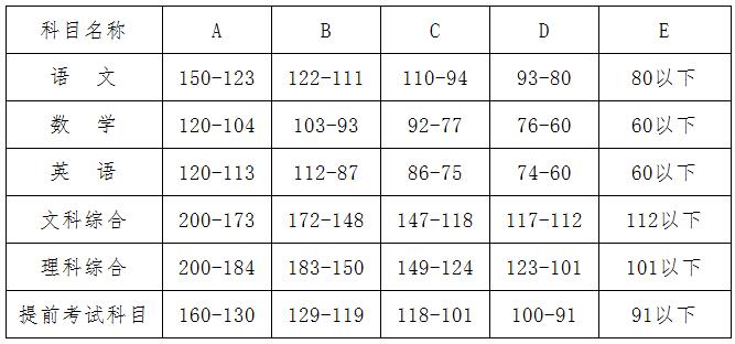2016年长沙市中考城区等级分数区间及人数