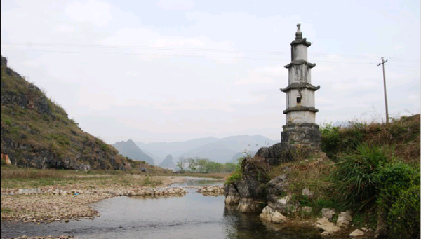 8月23日,江华瑶族自治县大圩镇黄庭村,工作人员发现清代惜字塔。 通讯员 摄