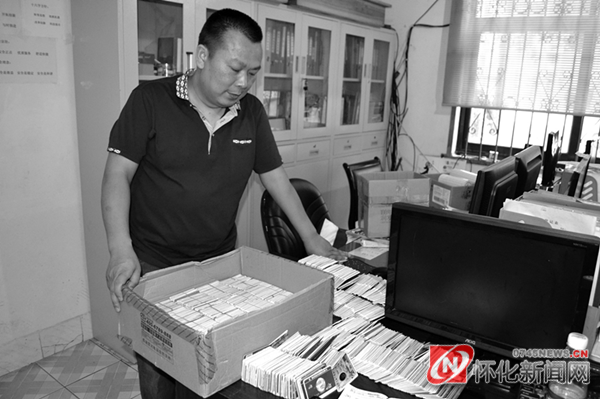 8 月 18 日下午,在怀化公交集团服务质量稽查部,彭宏祥部长从柜子里端出一纸箱,里面全是驾驶员收缴的违规使用的老年 IC 卡。