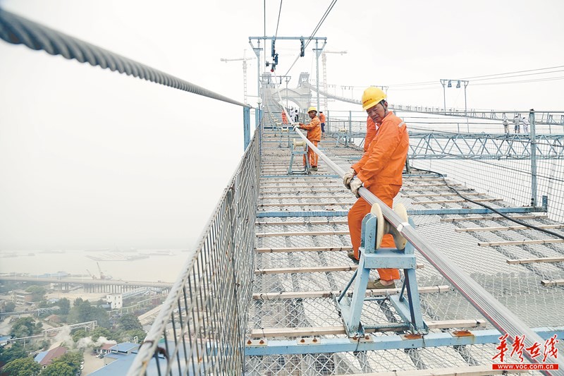 大岳高速洞庭湖大桥架设主缆 所用钢丝可绕地球3圈
