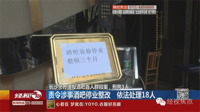 记者曾报道了长沙解放西路两家酒吧因为争抢车位,近百名员工参与打斗,引发了市民的极大关注。8月18日,长沙市公安局向外通报,菲比和苏格缪斯两家涉事酒吧依法责令停业整顿,而酒吧主要负责人也被刑拘。