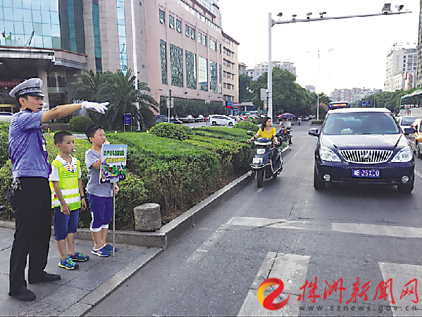 株洲晚报8月13日讯(记者 杨凌凌 通讯员 许琳 摄影报道)11日,白鹤小学的10名小学生选择去体验交警站岗指挥交通的辛苦。