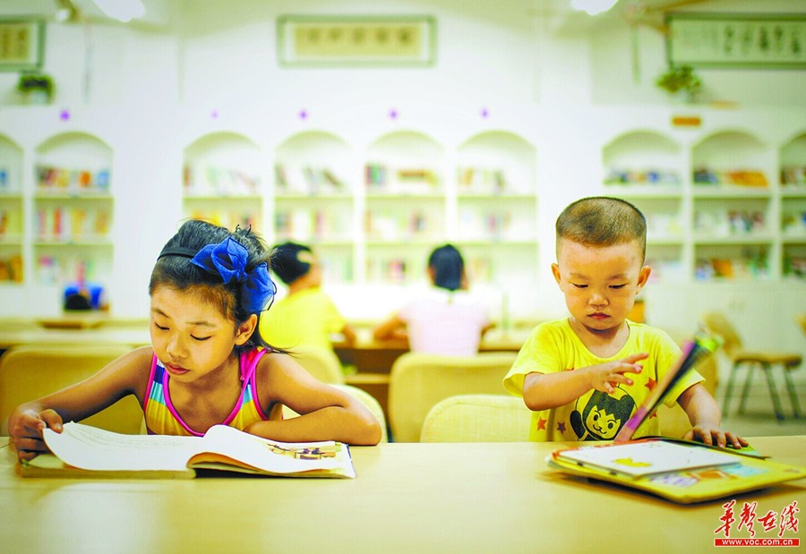 8月8日下午,永兴县青少年活动中心,小朋友在免费休闲读书吧看书。近年来,该县以“全民阅读让永兴县更文明”为主题,积极建设“书香之县”,在社区、农村、学校、机关单位、企业等设立了600多家免费休闲读书吧。 湖南日报记者 童迪 摄